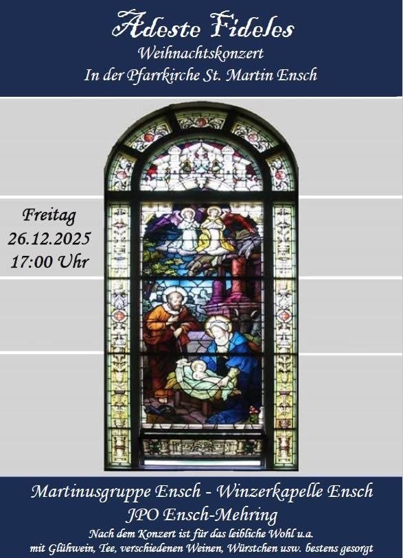 Liebe Freunde und Gäste der Winzerkapelle Ensch, der Martinusgruppe Ensch und des JPO Ensch-Mehring Auch in diesem Jahr lassen wir die Weihnachtsfeiertage ganz traditionell wieder mit einem Weihnachtskonzert der Martinusgruppe […]